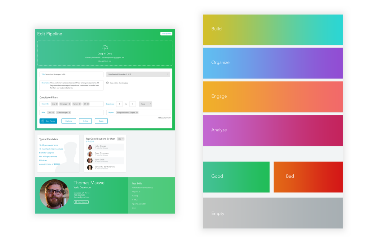 GetTalent is a subbrand of Dice, offering solutions that enable companies to build and nurture relationships with potential hires. We worked with their development team and rebuilt their platform with a new visual design language. Focusing on the user dashboard, the design brings ease to the whole process of finding new hires.